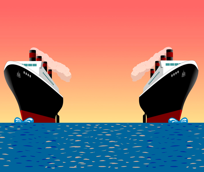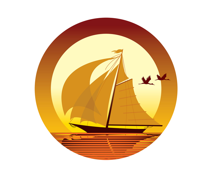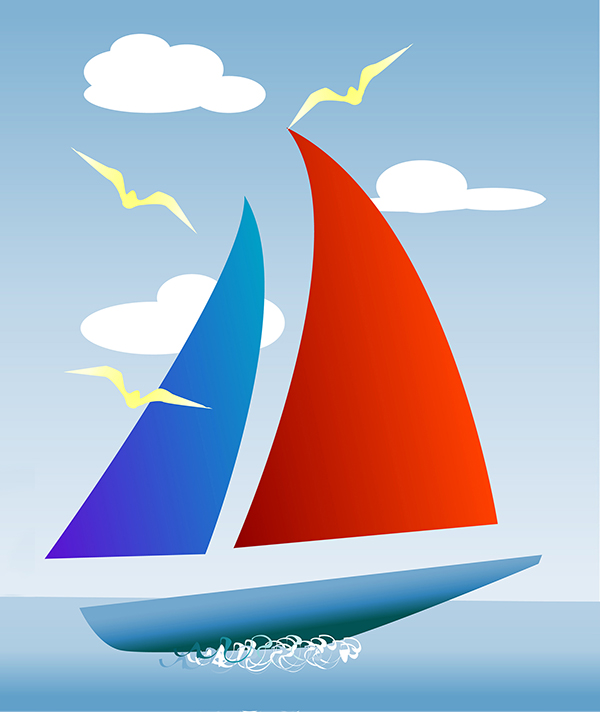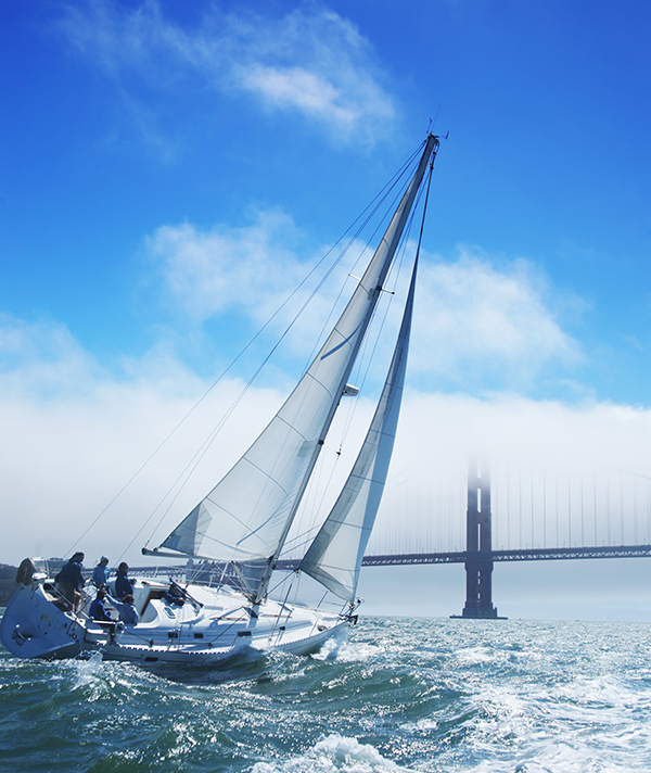 Beautiful yacht in San Francisco bay, Golden Gate bridge on the horizon. California, USA