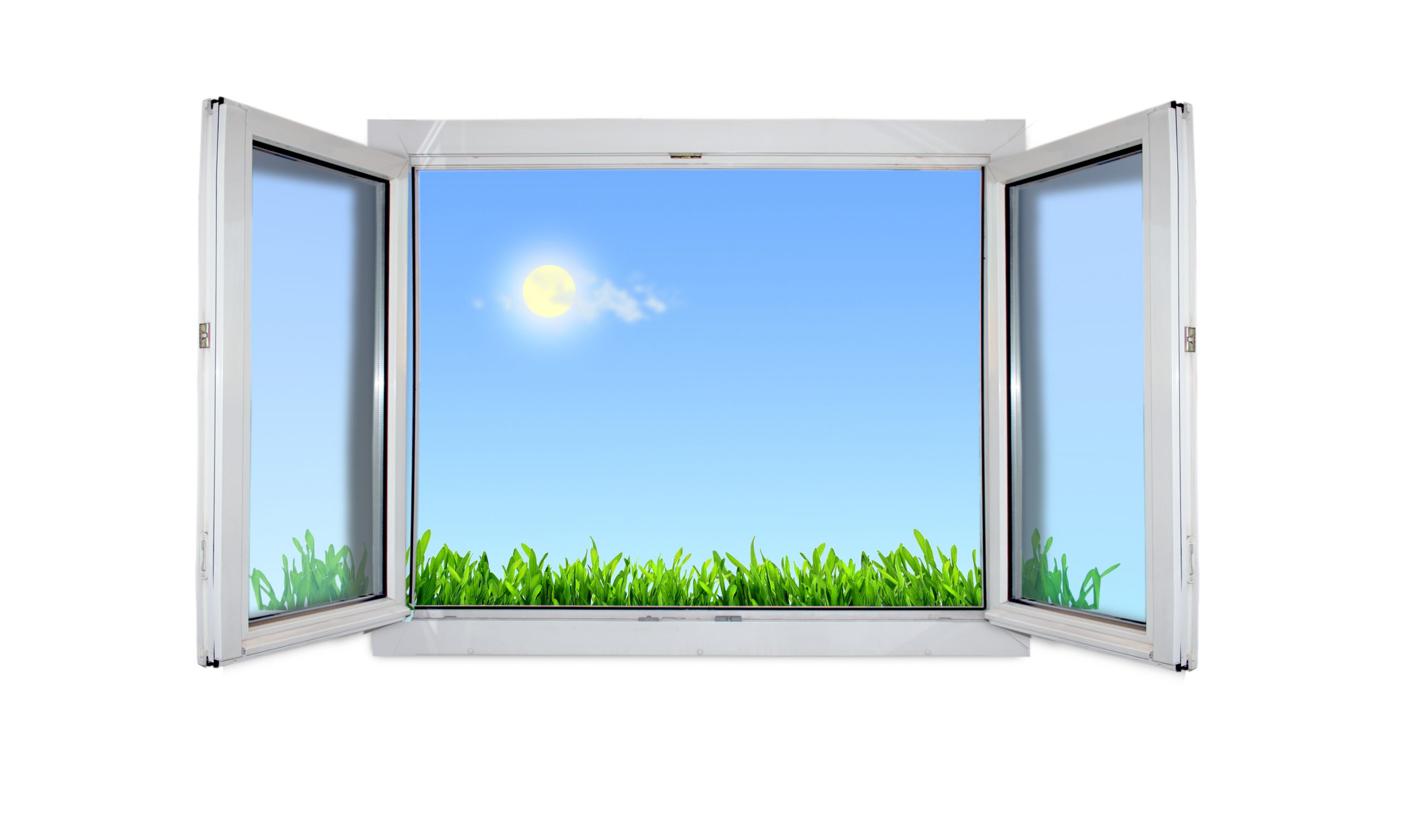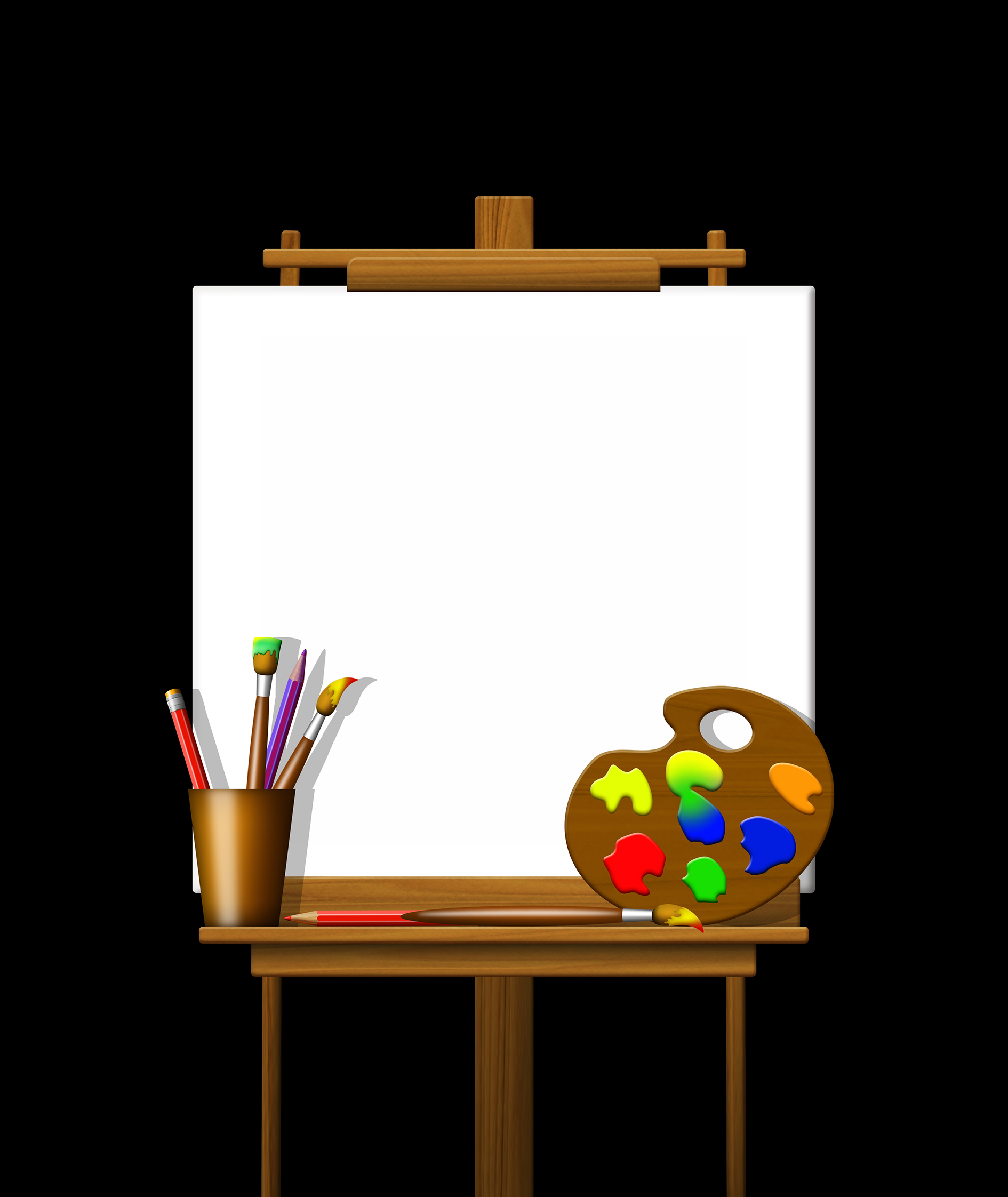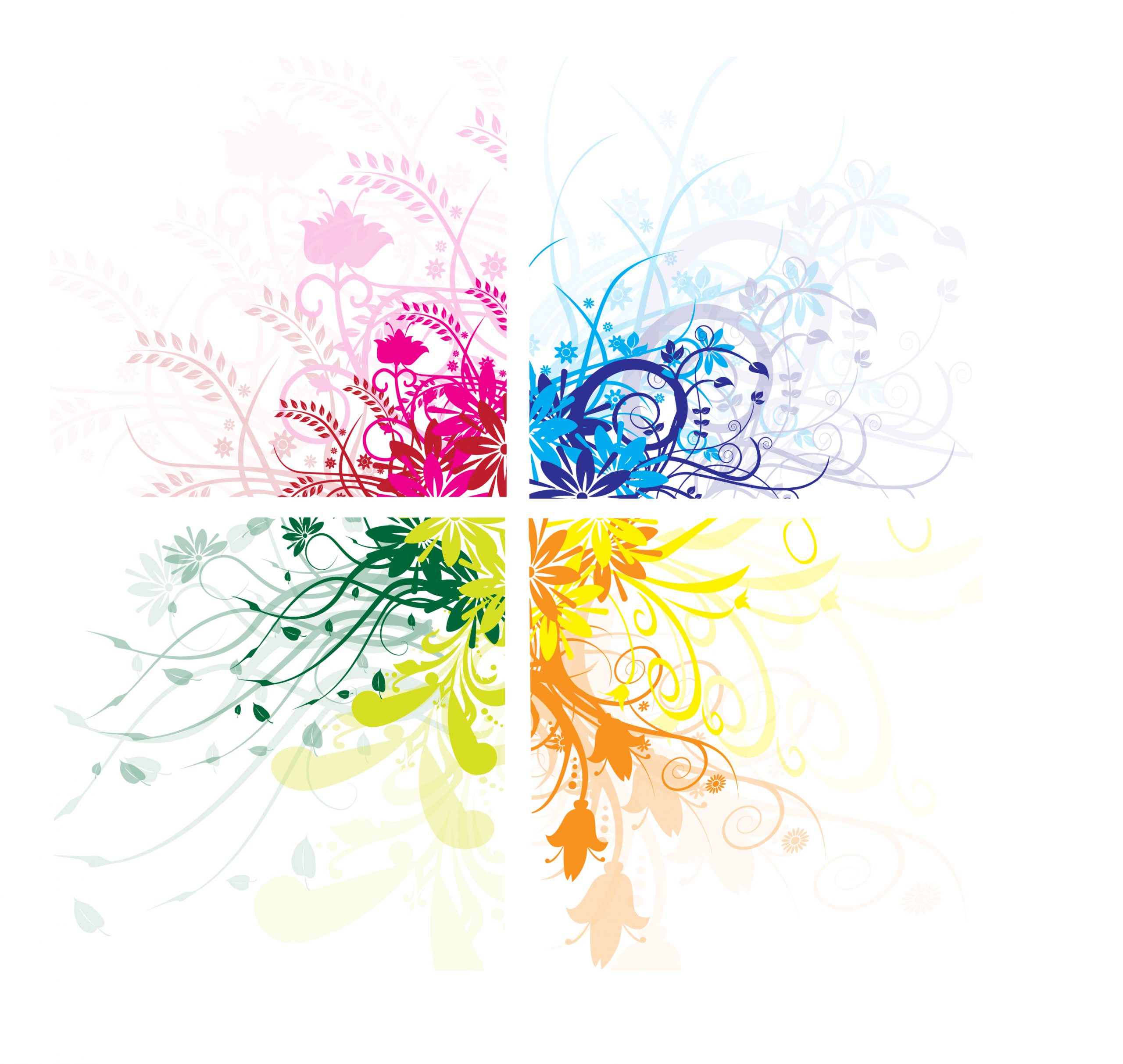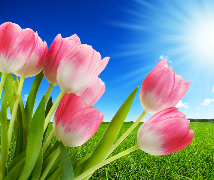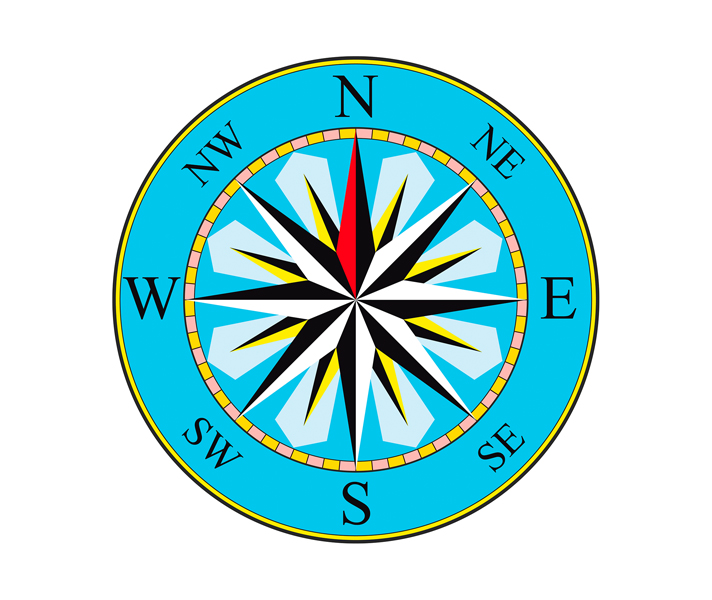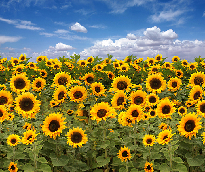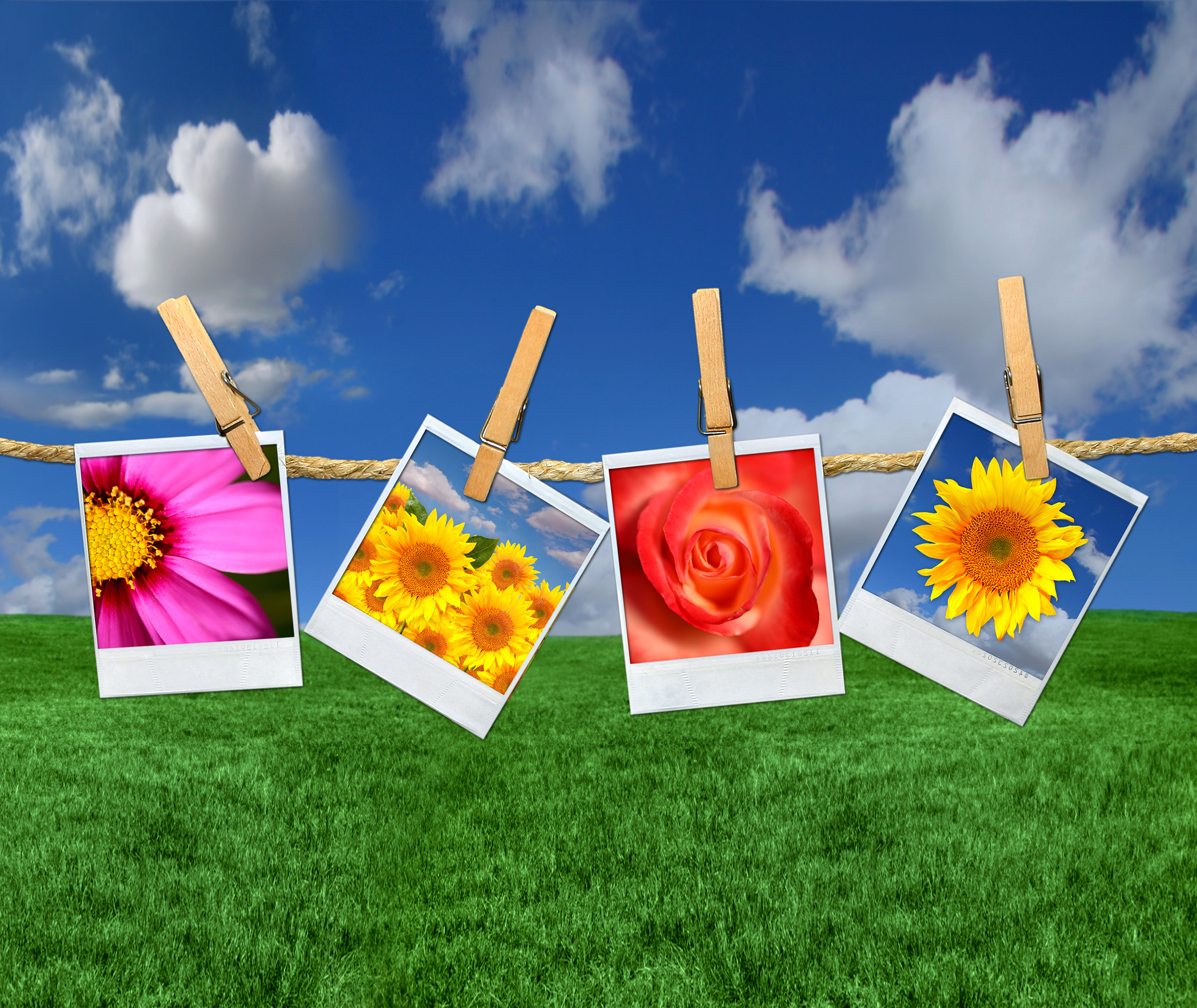 Fantasy abstract of a blue sky with a rainbow and cumulus clouds, reflected over water.