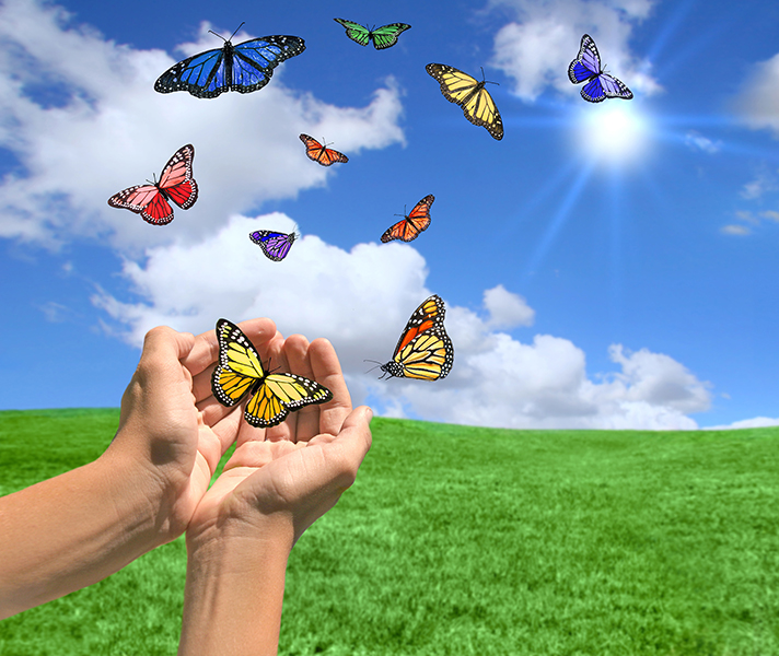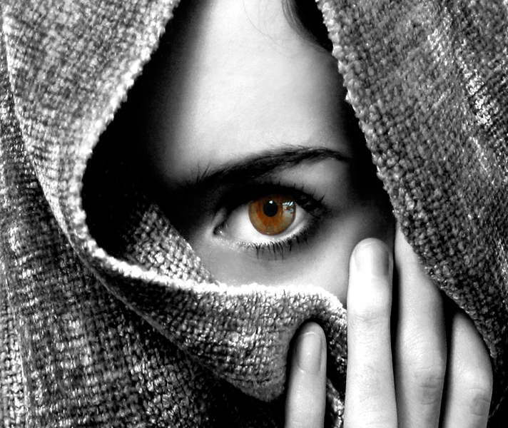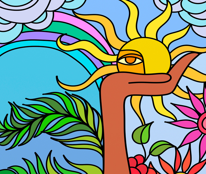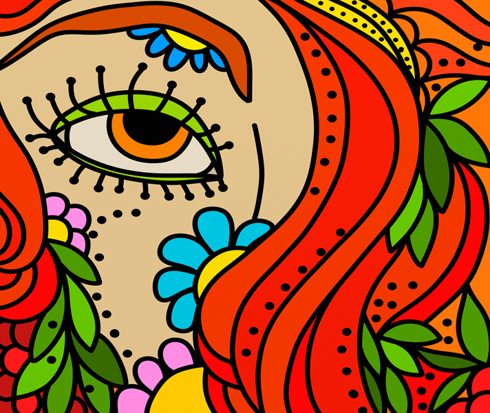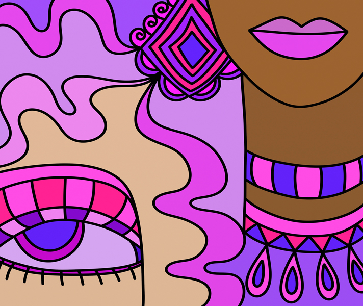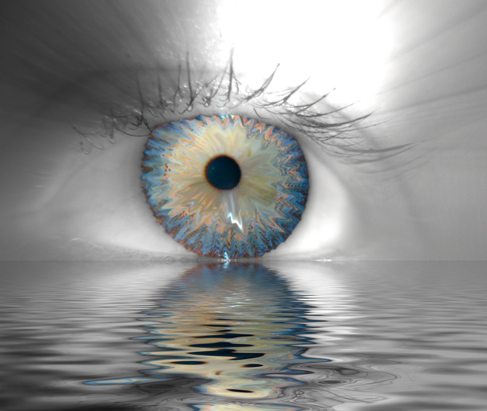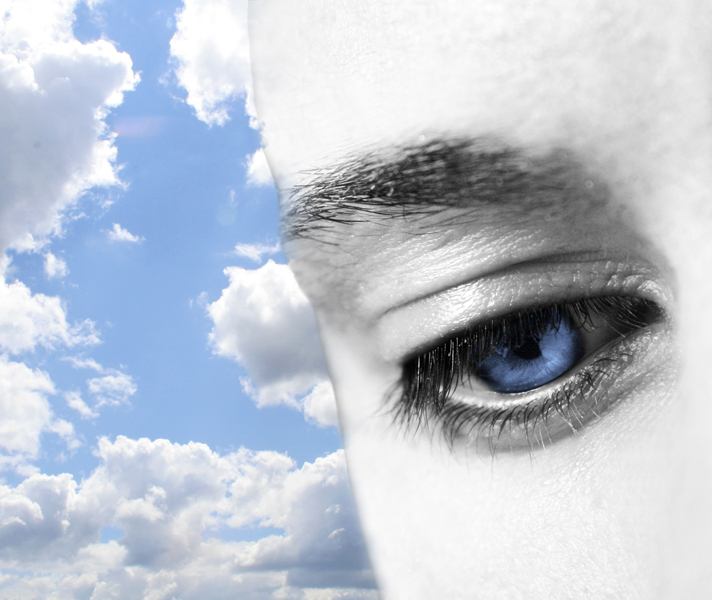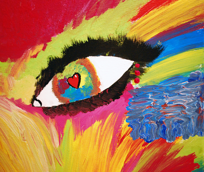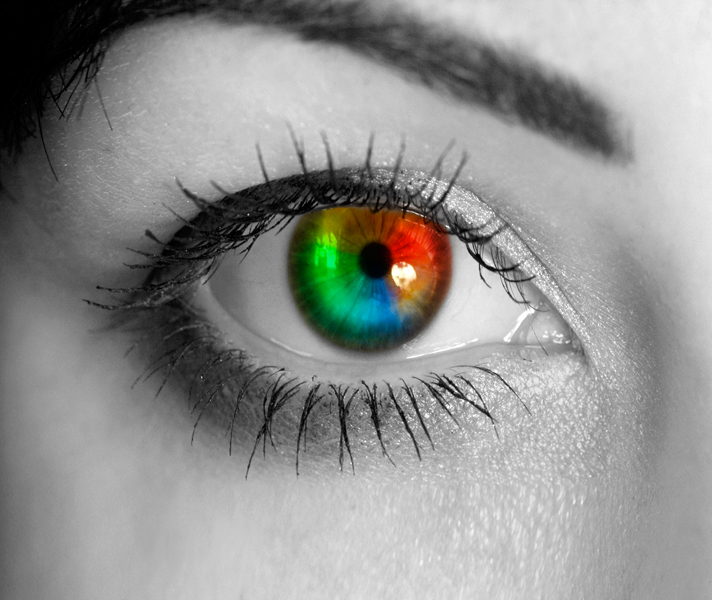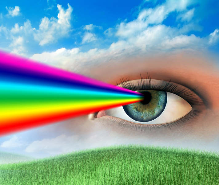 Rainbow coming out of a woman’s eye. Digital illustration.