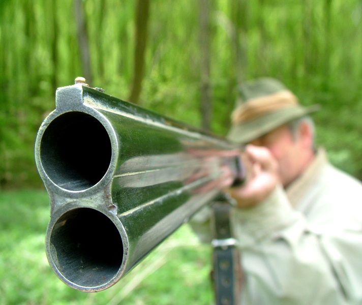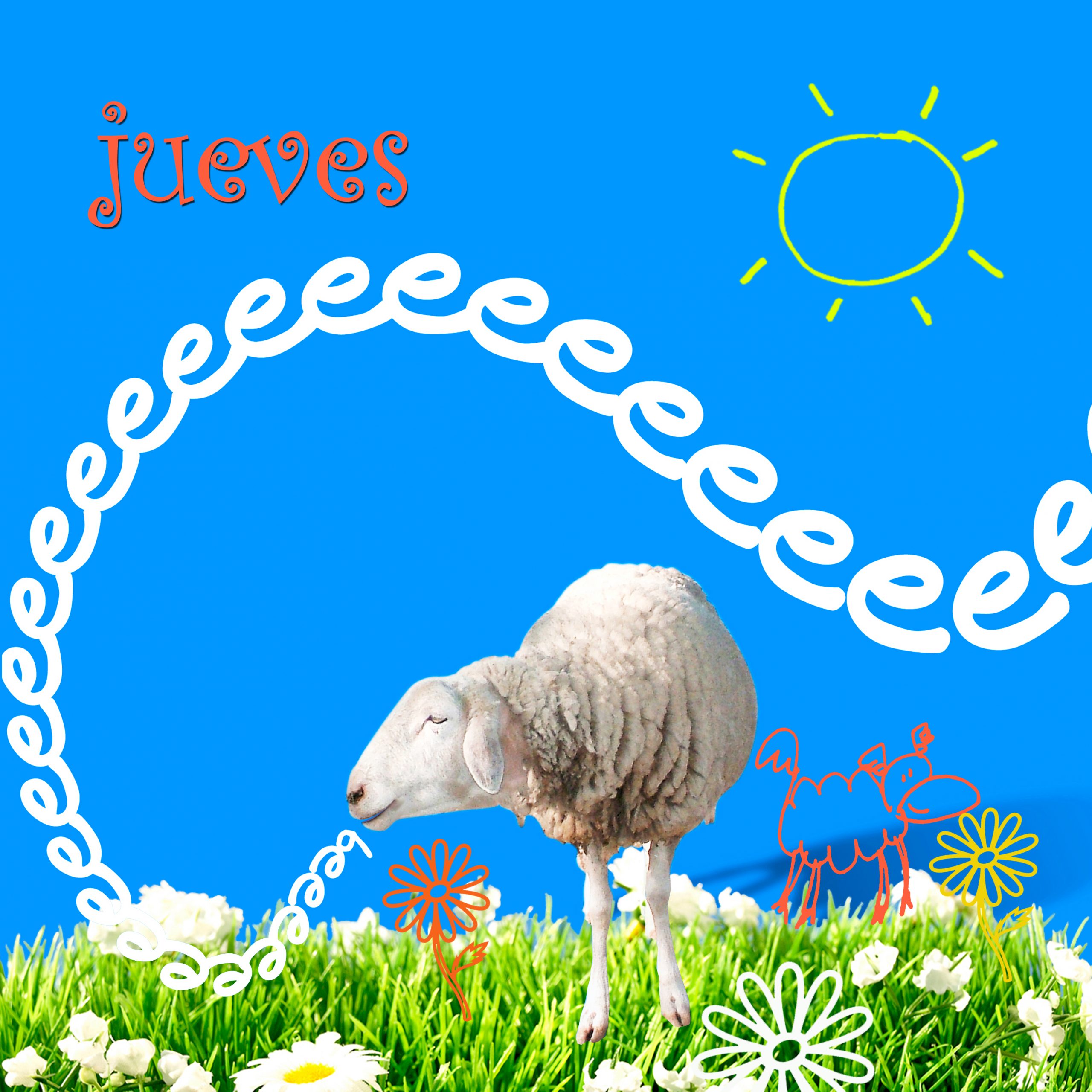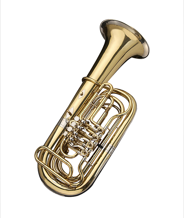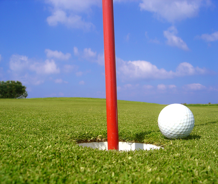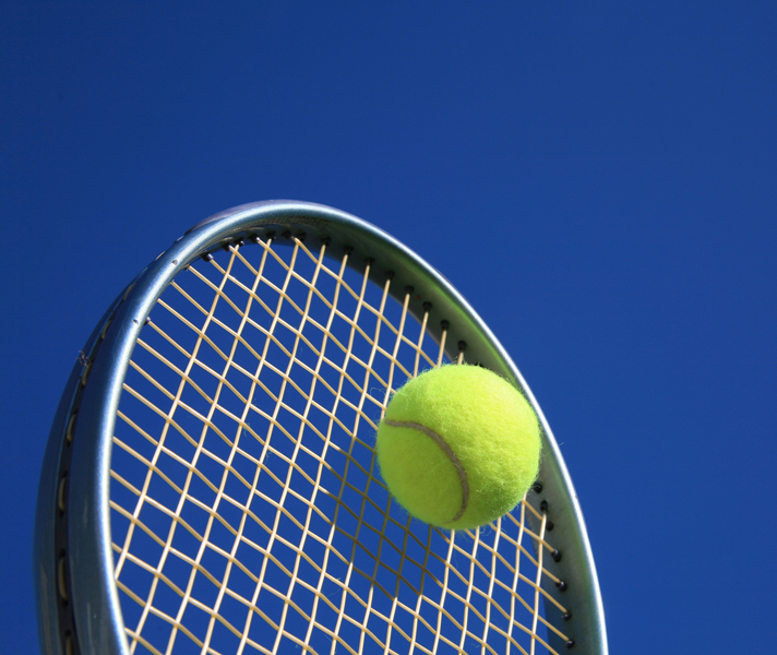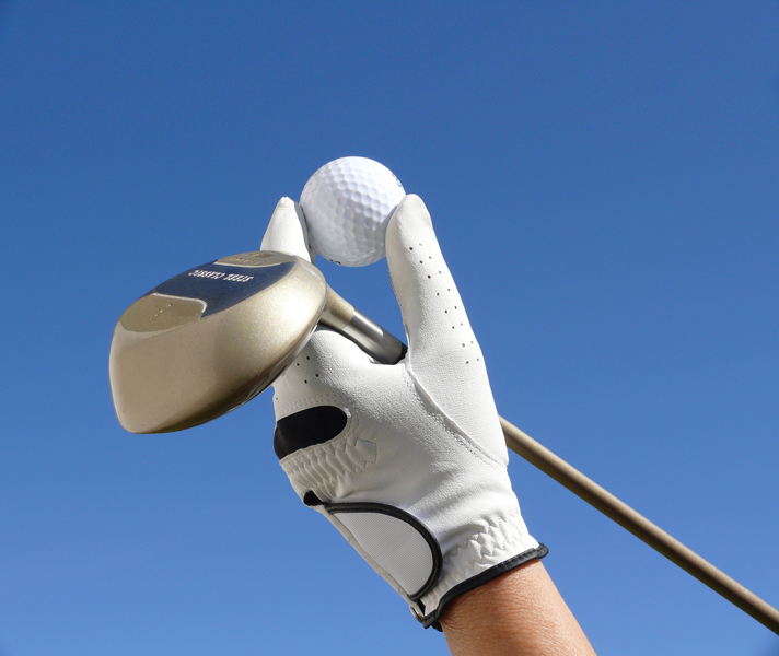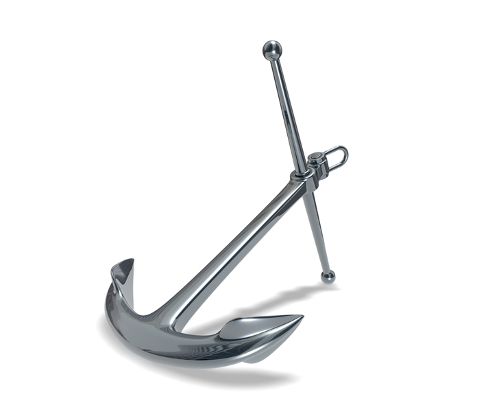 Double knot from a rough cord on a background of the blue sky. Reflection in water