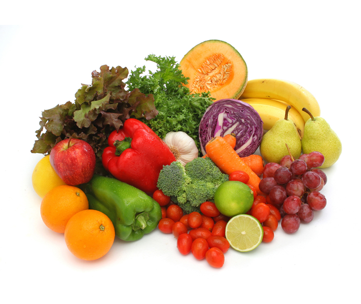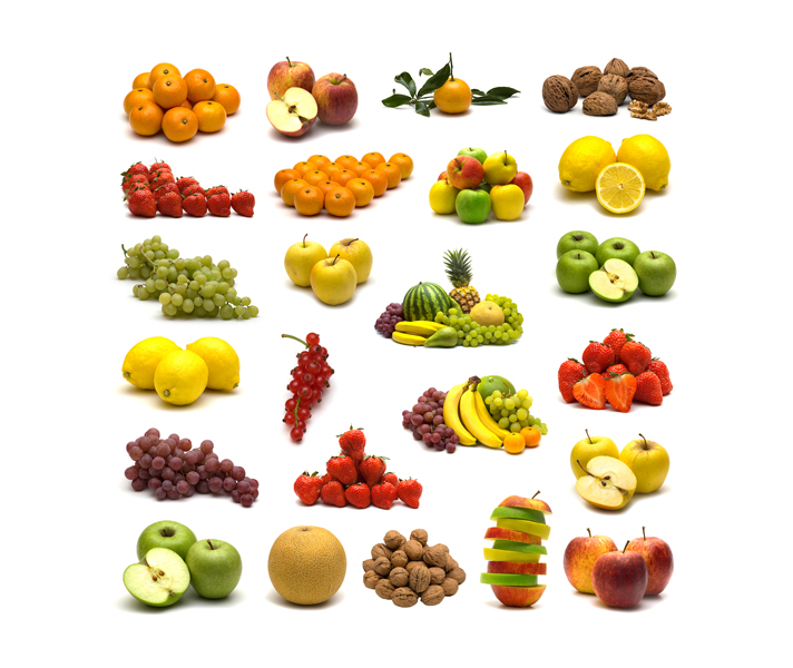 Colorful fresh group of fruits and vegetables for a balanced diet. White background. Look at my gallery for more fresh fruits and vegetables.