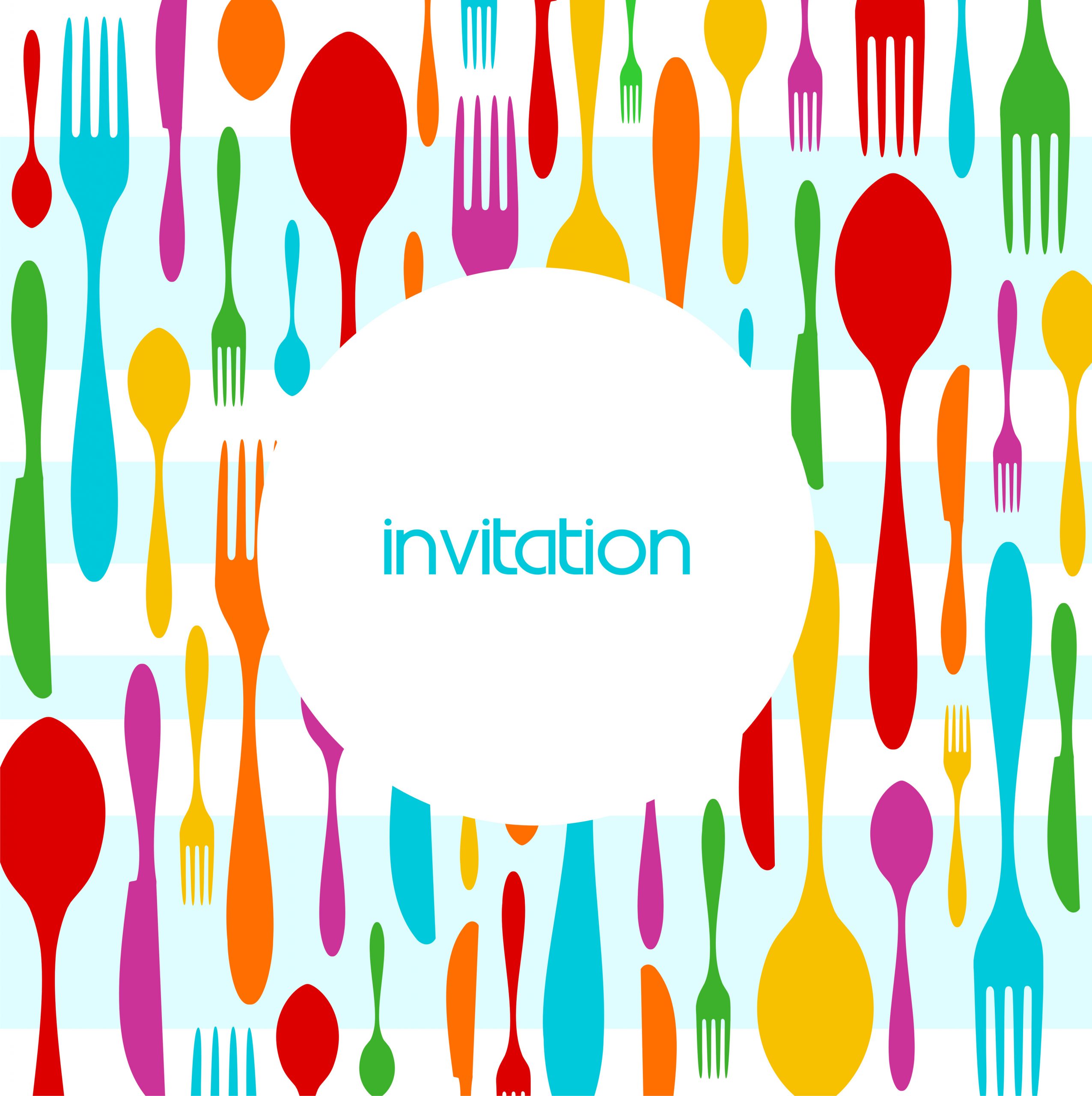Food, restaurant, menu design with colorful cutlery silhouette background. Suitable as invitation dinner card. Vector available