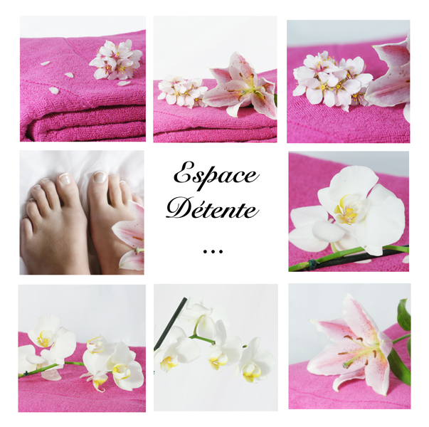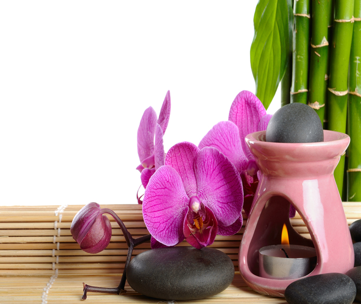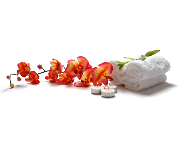 Spa treatment with aromatherapy, pedicure, manicure, massage, herbal tea, healthy fruit, meditation, and skincare