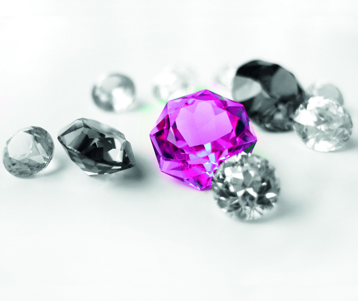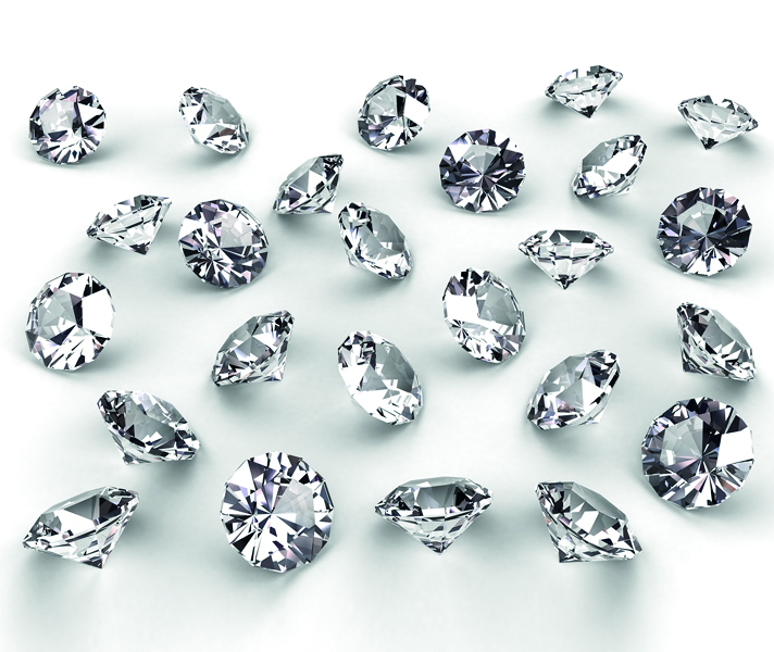 Several diamonds with realistic soft shadows on white. High resolution 3D image