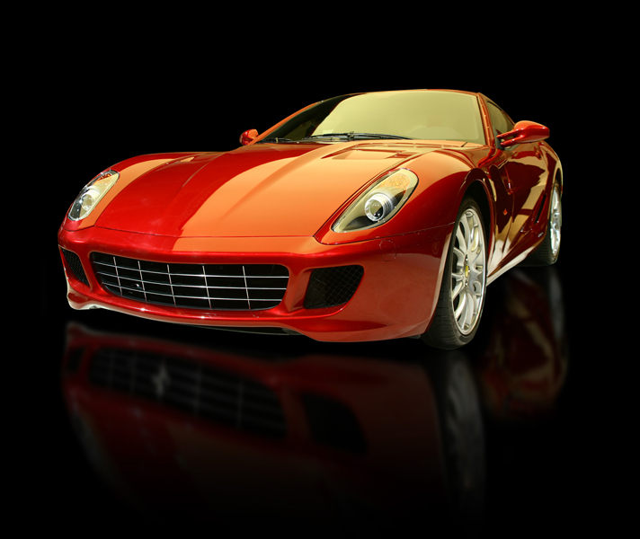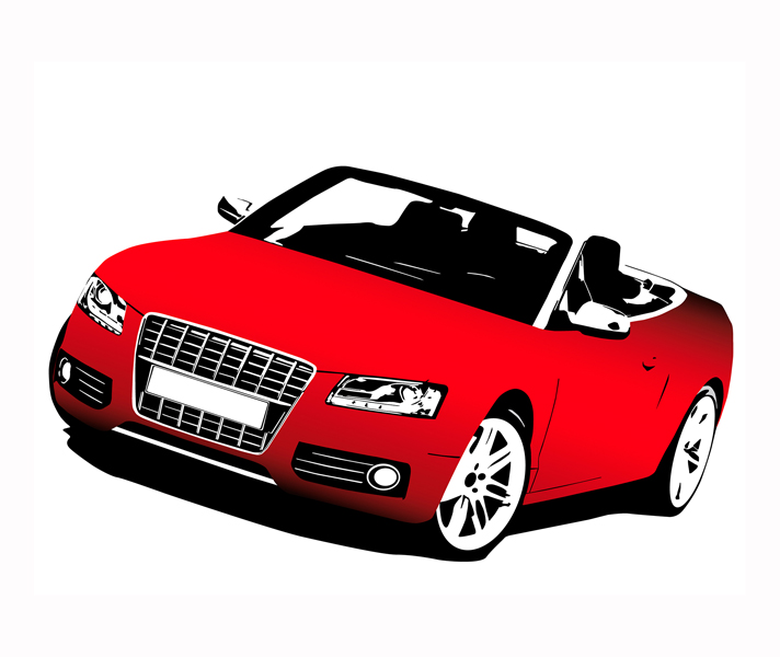 Beautiful and expensive European convertible sports car isolated on a white background. Realistic shadow under car.