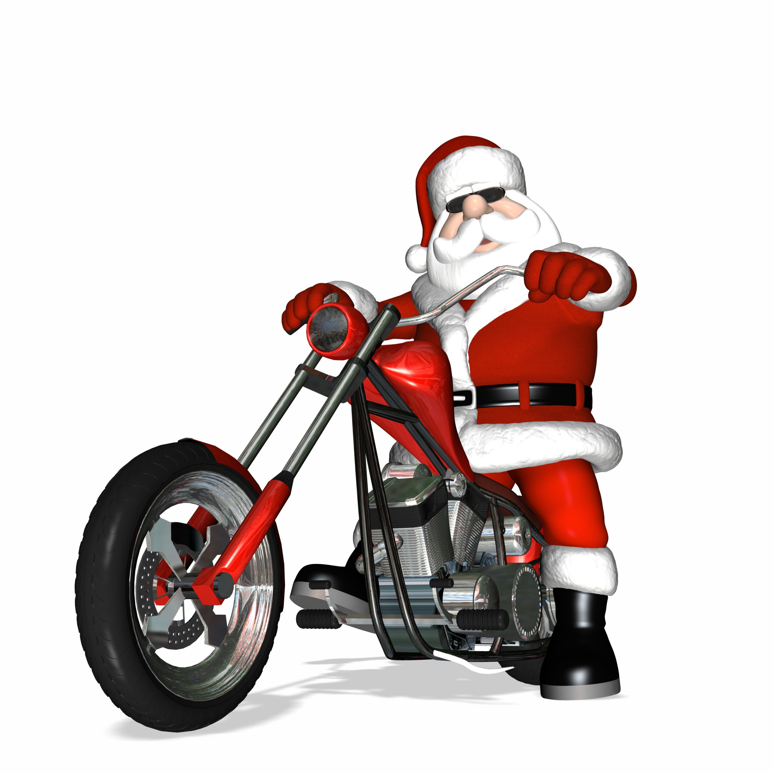 Santa looking cool with a bit of an attitude on his shiny new red and chrome chopper.