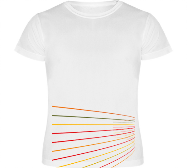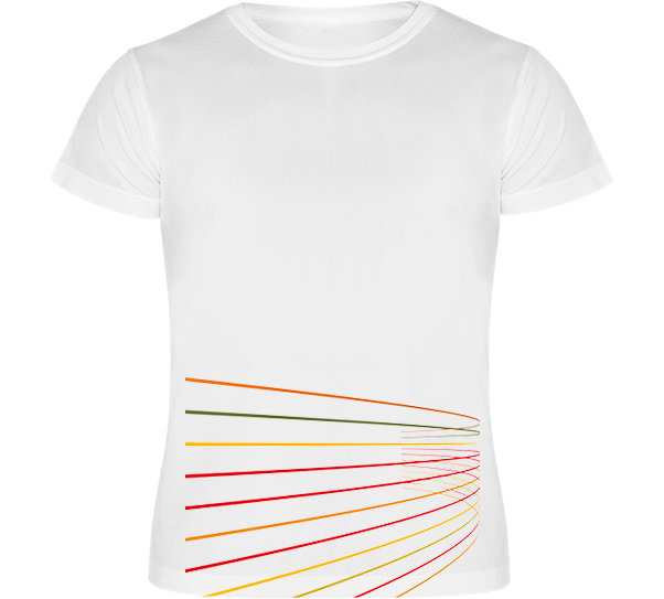 Impresión a una cara con rayas de colores en el faldón.