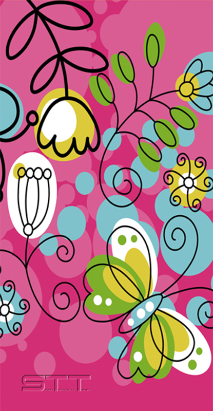 640 Toalla Flores Fucsia. Toalla de deporte y baño súper absorbente con dibujos de flores y mariposas de colores sobre un fondo rosa o fucsia. Además la puedes personalizar con tu nombre. Toalla personalizada para regalo. Ideal para ocasiones especiales. Disponible en calidad compacta o rizo algodón. Toalla deportiva en diferentes tamaños, playa, ducha, piscina, etc.
