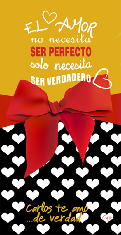 1215 Lazos de Amor. Colección Día de los Enamorados. Texto de amor sobre lazo rojo. Fondo crema y negro con corazones. Tu regalo ideal para el 14 de Febrero San Valentín.