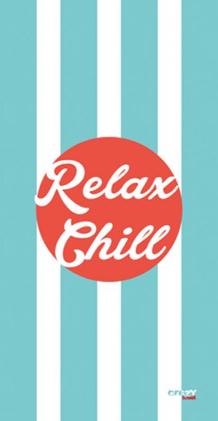 Toalla 1285 Relax Chill Blue con estampación digital y calidad fotográfica a todo color. Diseño de rayas azules, con circulo rojo y letras Relax Chill.